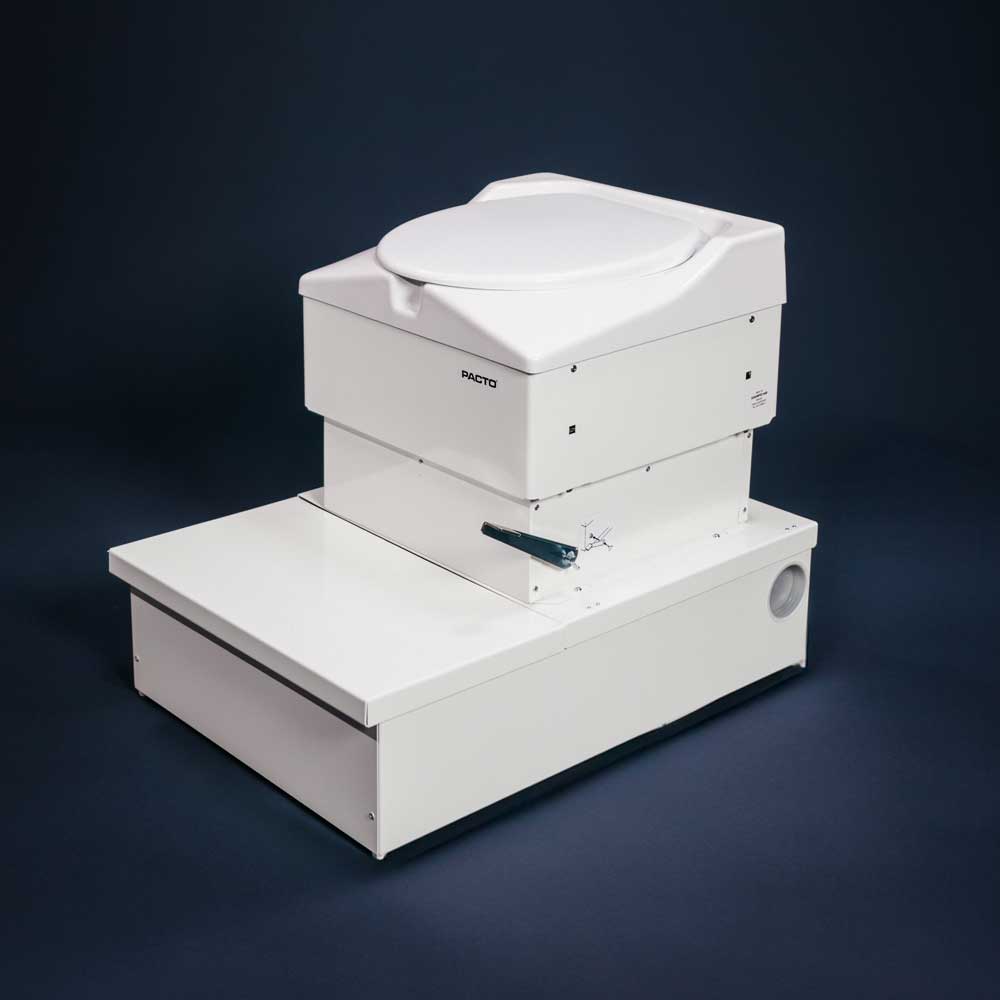 Toaletten placeras på ett PACTO Podium som innehåller uppsamlingssäckarna för avfallet. Denna installation är bekväm eftersom den inte kräver något hål i golvet och tömning av avfallet kan hanteras på ett enkelt sätt.